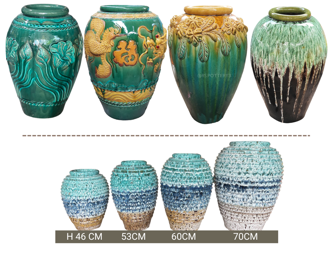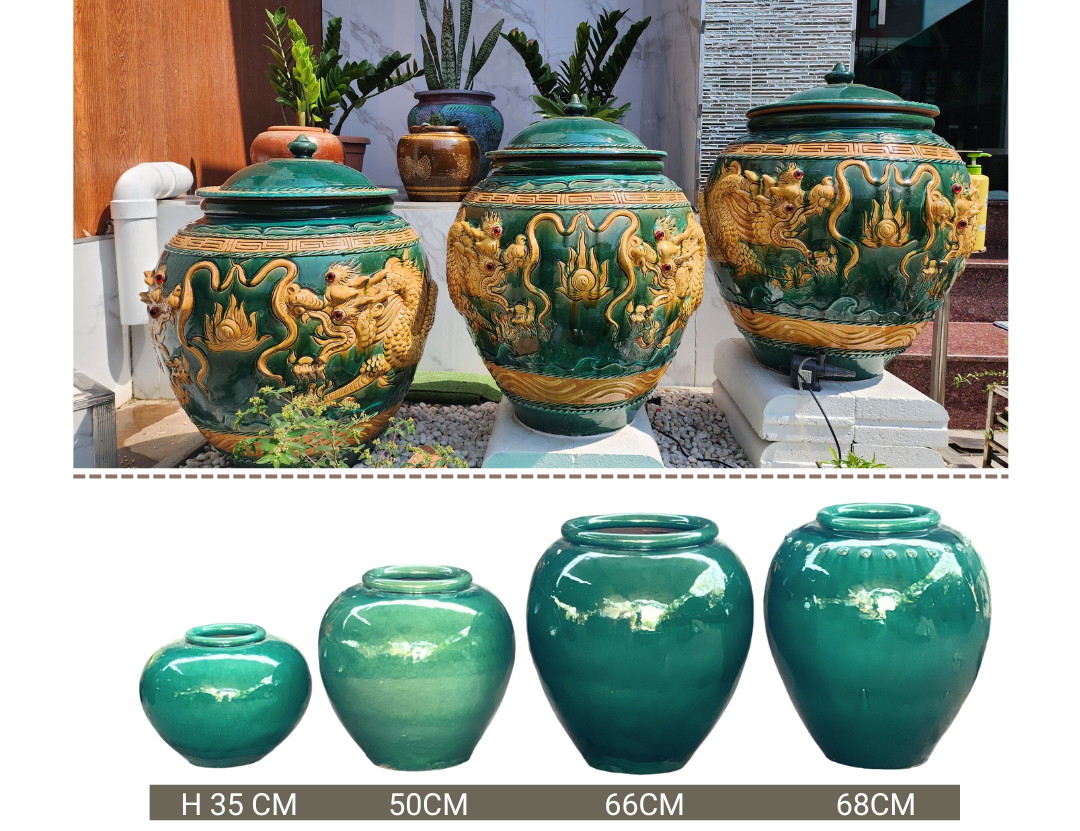 The versatile pottery can be utilized as a water jar, fountain, or planter pot, adding functionality and charm to any space.
